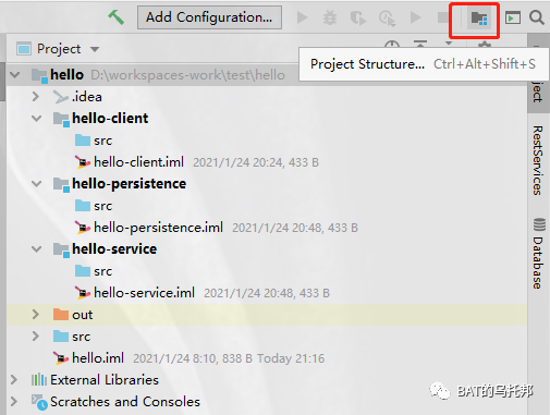 本文基于上文已搭建好的hello项目案例,继续研究其项目结构Project Structure的管理。从结构查看,到修改定制,那么问题来了,如何打开一个Project项目的结构页呢?