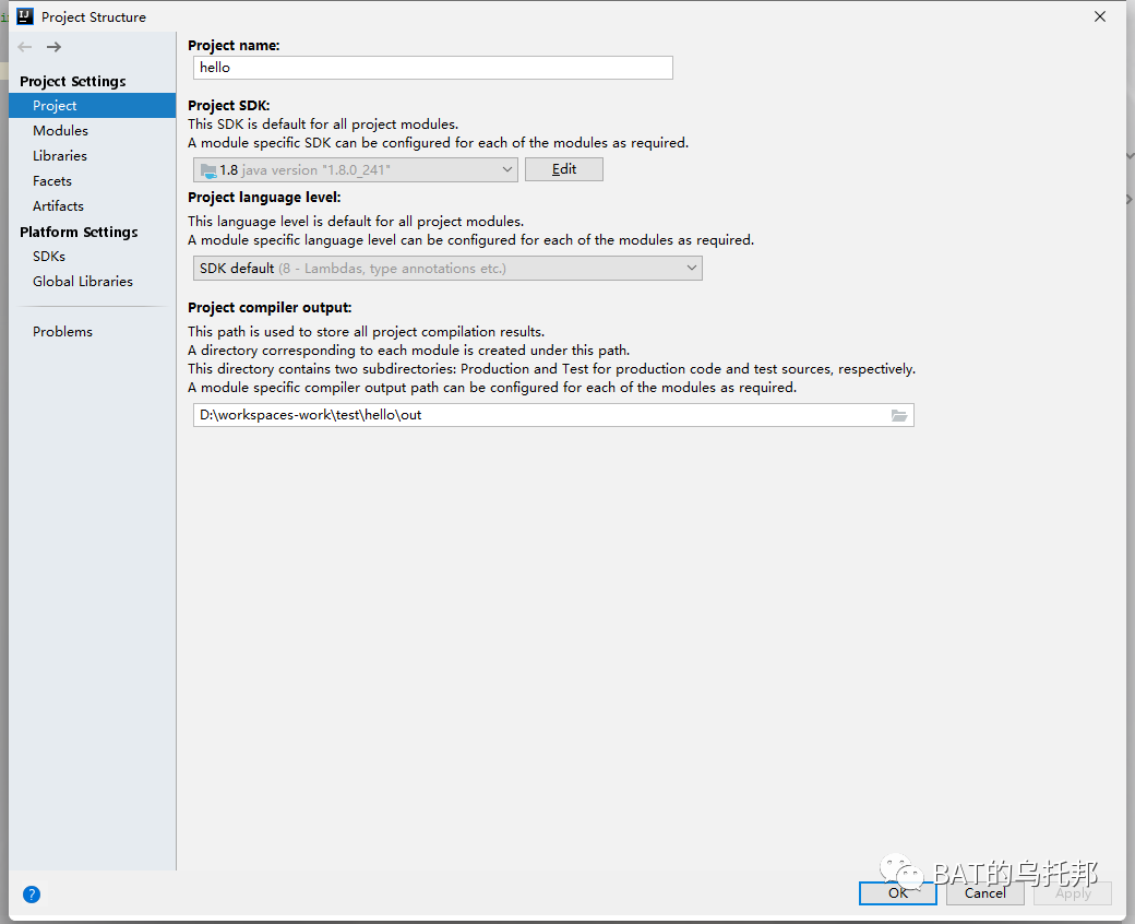 此视窗可以看到Project本身的基础信息。如:名称、SDK版本、语言等级等等,比较简单。