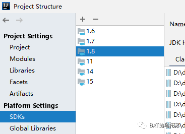 Project Settings:项目设置(最重要),本文详解 Platform Settings:平台设置,也叫全局设置。用于管理SDK们(如JDK、Kotlin的SDK等)、全局库。 一般来讲,全局的JDK都会配置在此处,比如我因为经常要做多版本尝试,就管理了多个JDK版本