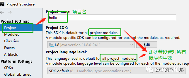 为何是SDK版本而不是JDK版本?答:因为IntelliJ IDEA是JVM平台IDEA,不仅仅支持Java还有其它语言如Kotlin,所以写成SDK更抽象 为何指定了SDK还要指定语言等级?答:因为SDK版本并不直接决定语言等级。如你用的JDK 11,但依旧可以把语言等级调为8来进行编译/运行 这是集成开发环境的优势所在,轻松对多环境进行定制化支持 SDK和语言等级Project都可指定,作为全局默认 这些配置Module默认集成,但可自行修改自己的。比如module 1使用Java 5编译,module 2使用Java 11编译,这是允许的