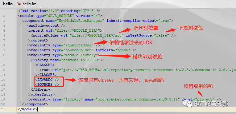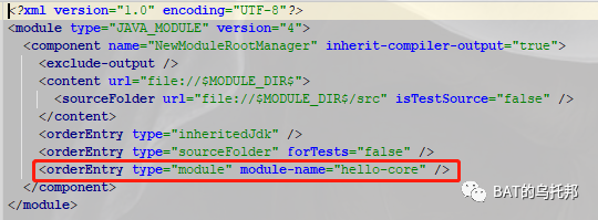 既然依赖变化了,自然而然的也会体现在hello.iml文件里喽,来看看: