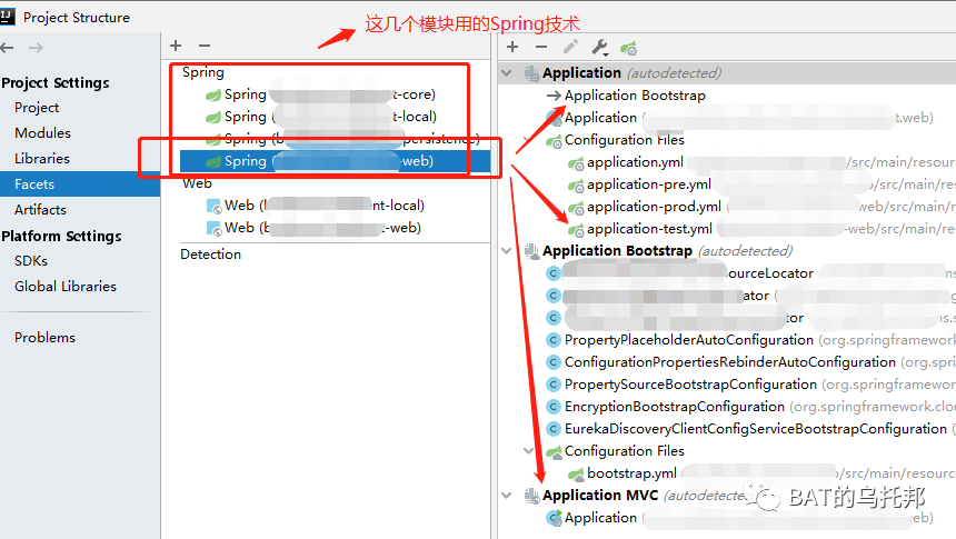 模块对应的Facets IDEA会自动Detection探测,若没有你也可以手动添加。