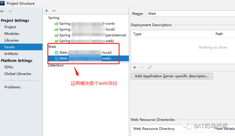 当然喽,Facets还有个作用是让IDEA编译器认识你的模块,比如如果你是个web模块,若没有在Facets里体现出来,那IDEA就不认识你,就无法给你提供web的一些便捷操作了。