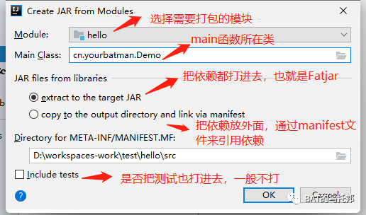 来个栗子,这里演示下将hello模块打包成一个Jar: