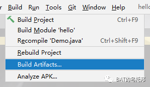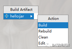 配置好后,只需顶部菜单栏Build -> Build Artifacts,就可以打出这个Jar包: