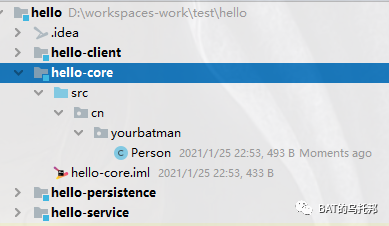 其实道理和步骤基本一样,比如hello-core模块里有个Person类: