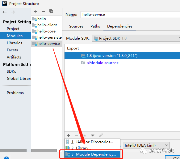 添加Dependency依赖时,请选择Module Dependency...