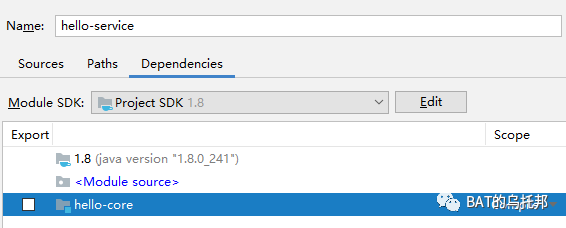 点击ok,搞定了。对应的,此依赖关系也会体现在hello-service.iml这个配置文件上: