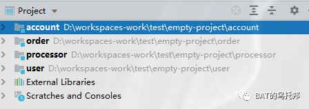 实现了所谓的:IDEA在同一窗口显示多个项目。若你发现你身边有这么样管理项目的同事,那么他是你的“前辈”没跑了,因为铁定是eclipse的资深用户,然后迁移到IDEA来。
