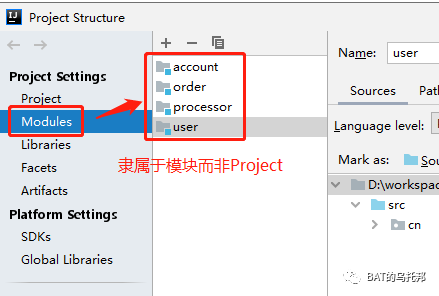 额外性能开销。比如你只想开发user,但还得把其它的加载进来,完全没有必要嘛。 说明:idea不能像eclipse一样close project的,毕竟人家那是workspace的概念,而idea同一视窗属于同一项目,总不能说关闭某个模块吧,模块一般相关性很强,完全没必要单独开/关 想一想,若你一个人负责了20+个项目,每次打开是不是得花上个几分钟呢? 概念上混乱。这么放在一起,其实就不是user项目、order项目了,而是user模块、order模块,很明显概念上就不准确了