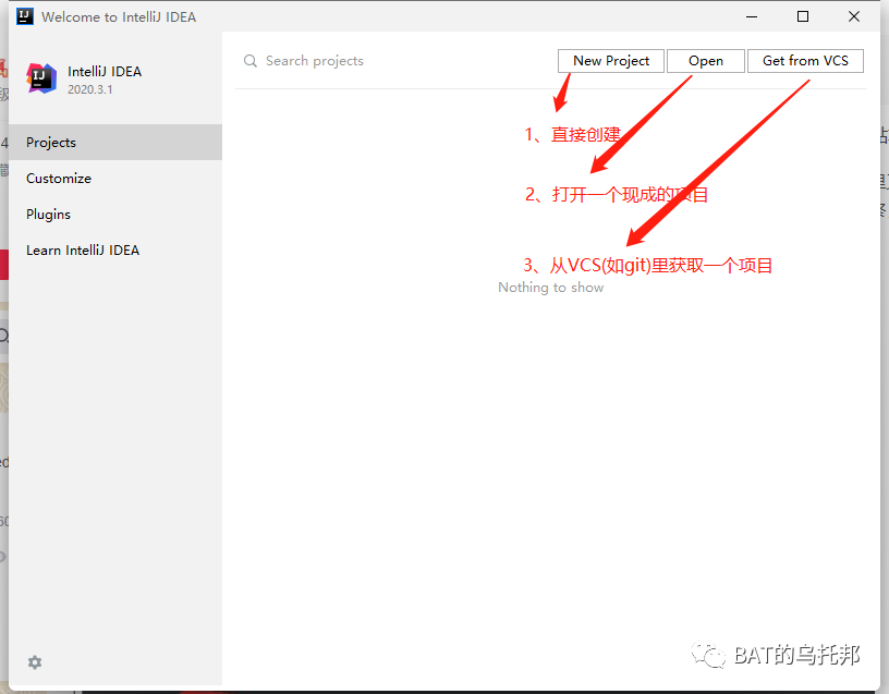 创建一个全新项目 打开现有项目 从VCS版本控制系统里clone一个项目