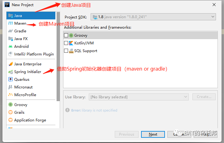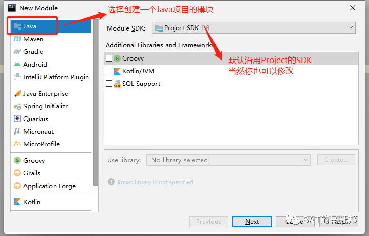 第二步:选择该模块类型,可以是Java项目、maven项目、Kotlin项目等等都行