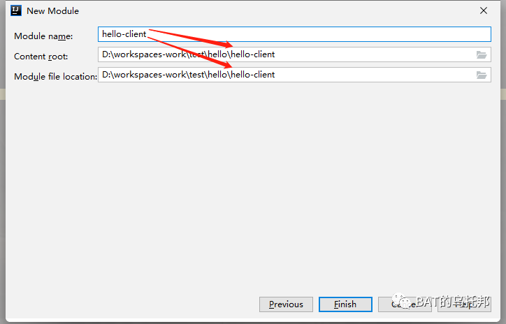 关于目录选择再强调一遍:默认情况下模块路径会在Project(或者父模块)的子目录下,但这并不是必须的,你也可以改为和Project的同级目录也是可以的,逻辑上依旧属于Project的模块,不会有问题。但一般建议保持这种层级关系而不要修改~