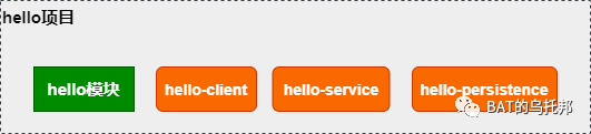 hello-service:实现核心业务功能处理 hello-persistence:复杂持久化工作 hello-client:作为客户端暴露出去