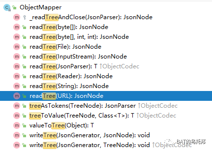 ObjectMapper中提供了树模型(tree model) API 来生成和解析 json 字符串。如果你不想为你的 json 结构单独建类与之对应的话,则可以选择该 API,如下图所示: