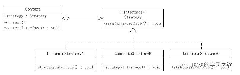 2、Strategy:策略接口或者策略抽象类,定义一系列抽象的算法策略.