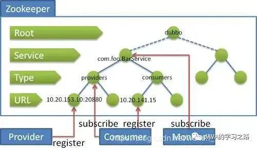 注意这里的dubbo只是一个框架,至于你架子上放什么是完全取决于你的,就像一个汽车骨架,你需要配你的轮子引擎。这个框架中要完成调度必须要有一个分布式的注册中心,储存所有服务的元数据,你可以用zk,也可以用别的,只是大家都用zk。