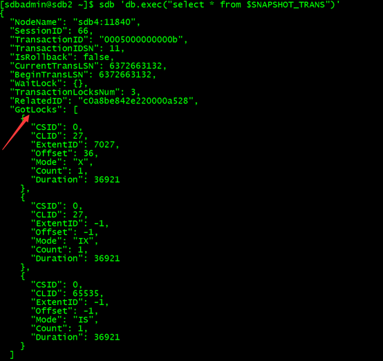 小结:由于采用了隔离级别是RC 并且translockwait设置为false的情况下,在第二个事务不会产生锁等待,而是会读到最后一次版本已提交的数据。通过锁快照也可以看到没有任何锁等待的情况出现。该隔离级别设置适用于绝大多数的OLTP场景。