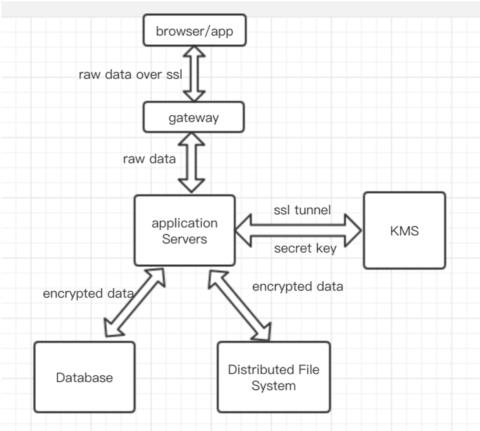 上图展示的是数据加密流程。飞书的加解密过程是在服务器上实现的,通过加密的 RPC 调用去硬件 KMS 中获取数据密钥,其他地方不会存储和导出密钥,主密钥也会定期轮换,加密算法使用的是 AES256。