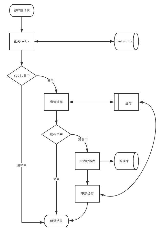 先查询缓存,缓存不命中再查询数据库。然后将查询结果放在缓存中即使数据不存在,也需要创建一个缓存,用来防止穿库。
