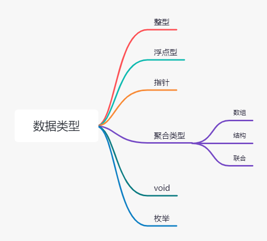 C 语言中有四种数据类型——整型、浮点型、指针和聚合类型。所有其他的类型都是从这四种类型的某种组合派生而来。