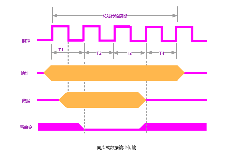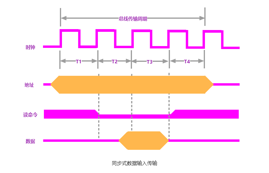 在一个总线周期中,发送方和接收方可以进行一次数据传送。采用统一的时钟,每个部件或设备发送或接收信息都在固定的总线传送周期中,一个总线的传送周期结束,下一个总线的传送周期开始。
