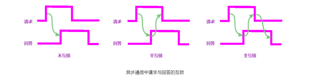 异步通信的应答方式又可分为不互锁、半互锁和全互锁三种类型。如下图所示。