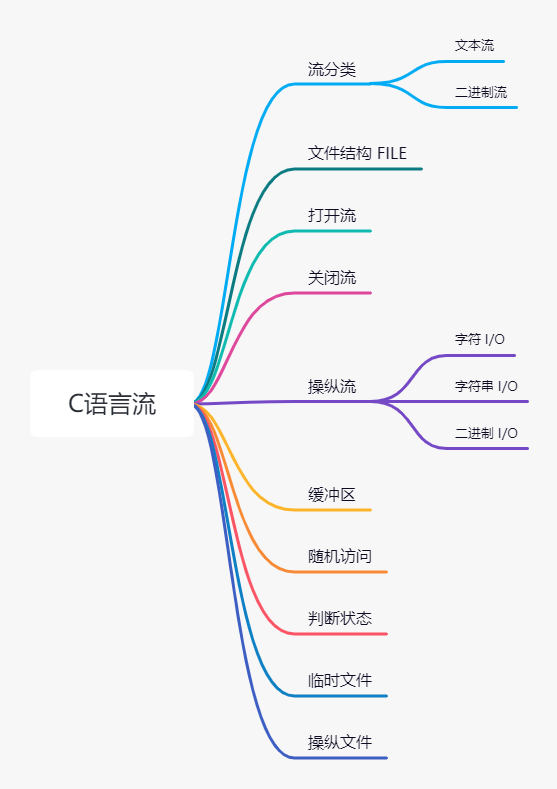 当流被打开后,需要操纵流,来完成需要的操作。C 语言提供了操纵字符、字符串和二进制的 I/O 函数来操纵流,如下所示。