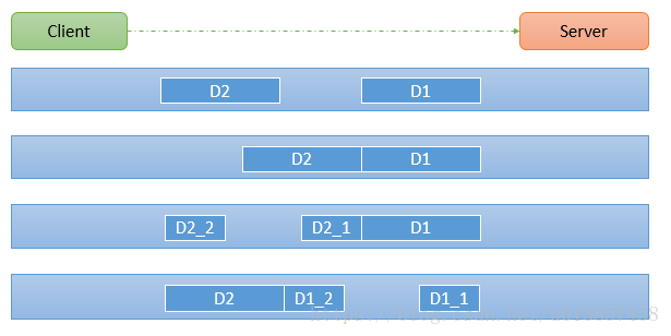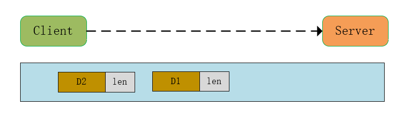 服务端分两次读取到了数据包,第一次读取到了 D1 包的部分内容 D1_1 ,第二次读取到了D1包的剩余部分内容D1_2和完整的D2包。