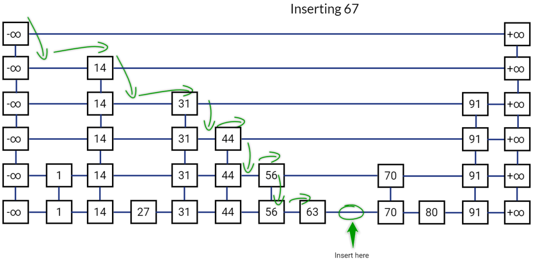这个查找过程就是在多级索引上跳来跳去,最后定位到元素。所以叫做跳表。