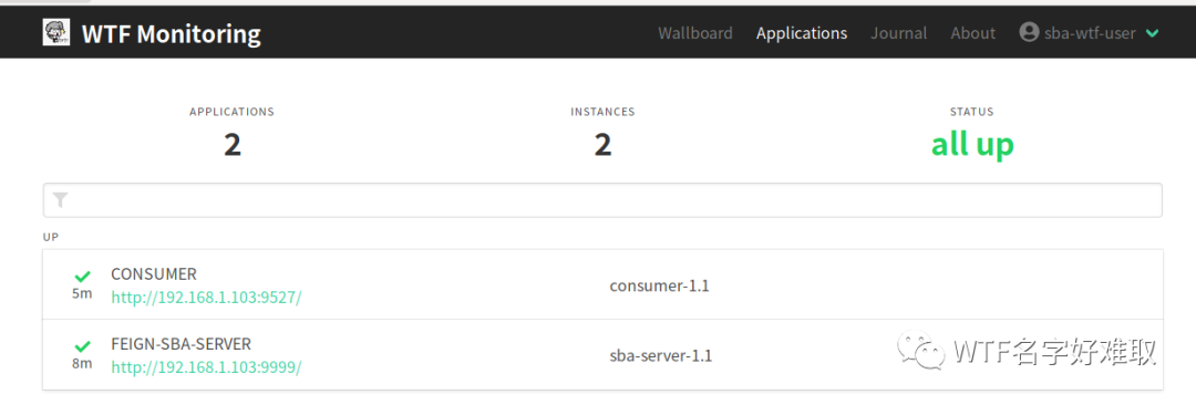 演示:Eureka 服务注册方式实现应用监控( 更多介绍,参考 Spring Boot Admin 官方网站)
