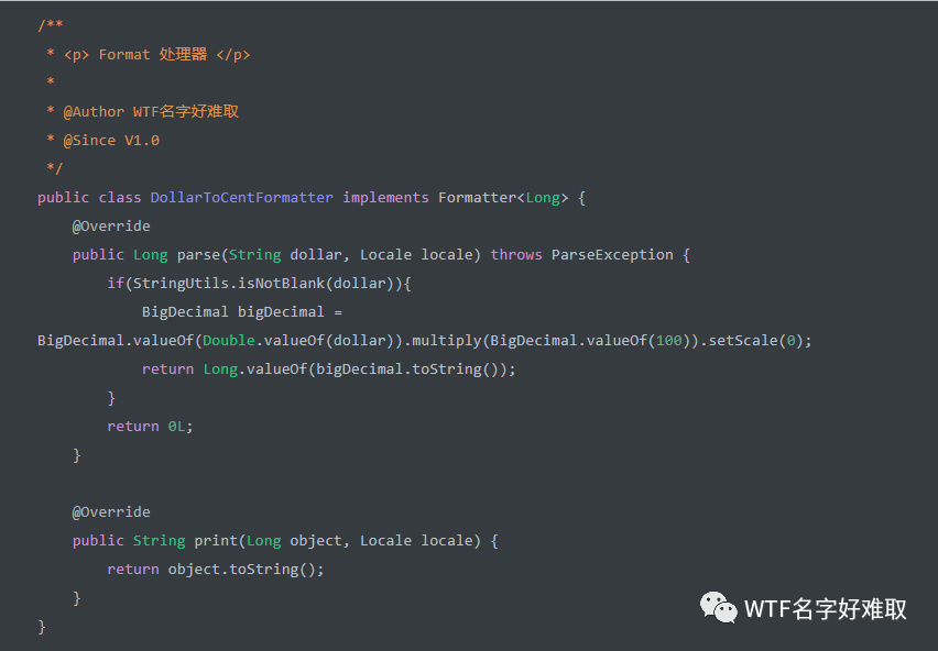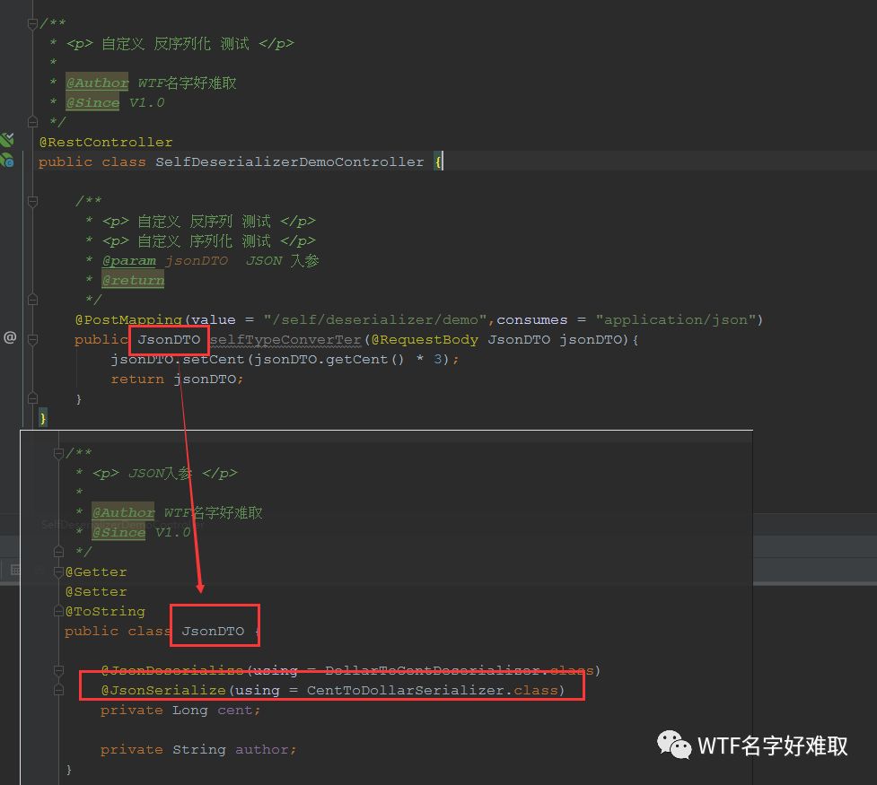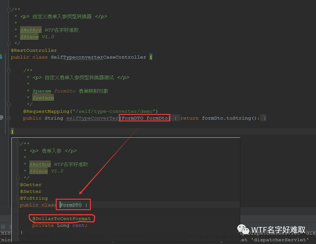 关键点:在需要使用 DollarToCentFormatter 进行类型转化的字段上使用自定义注解 @DollarToCentFormat 进行标注。