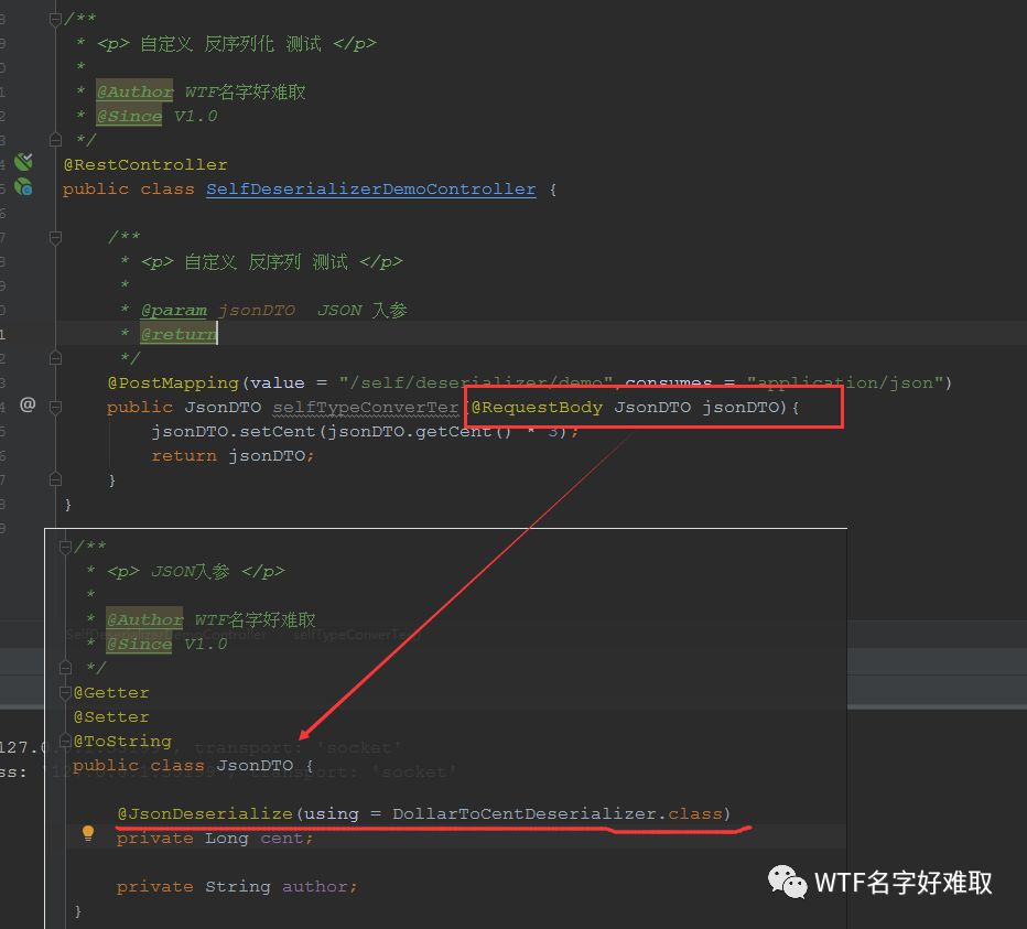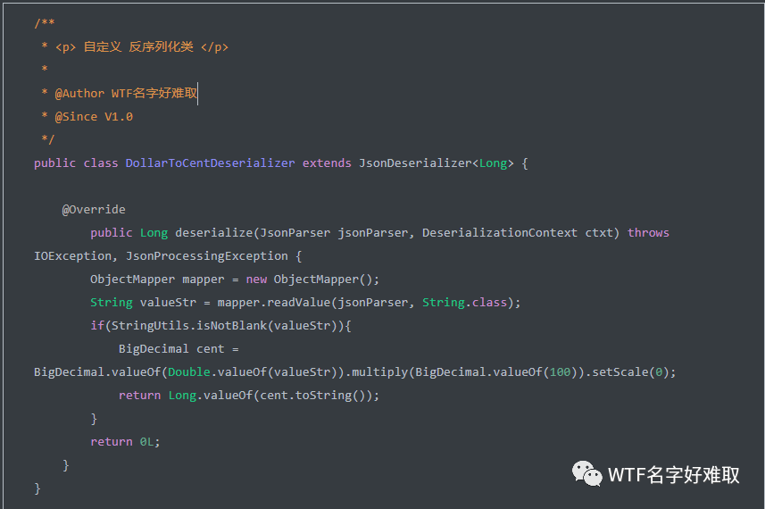 3、在需要进行反序列化类型转换的字段上加 @JsonDeserialize(using = DollarToCentDeserializer.class)