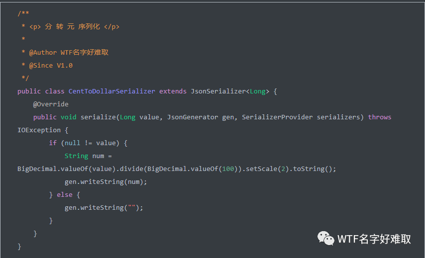 2、在需要进行序列化的字段上加 @JsonSerialize(using = CentToDollarSerializer.class)