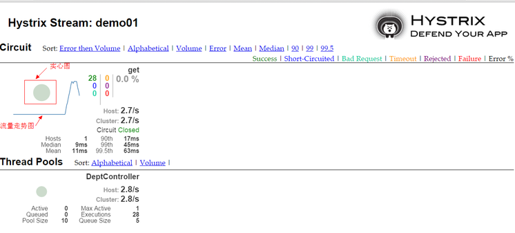 Hystrix除了提供服务容错、服务降级、服务限流功能外,还提供了对服务请求调用的监控、每秒执行的服务请求调用数、服务调用成功数等。