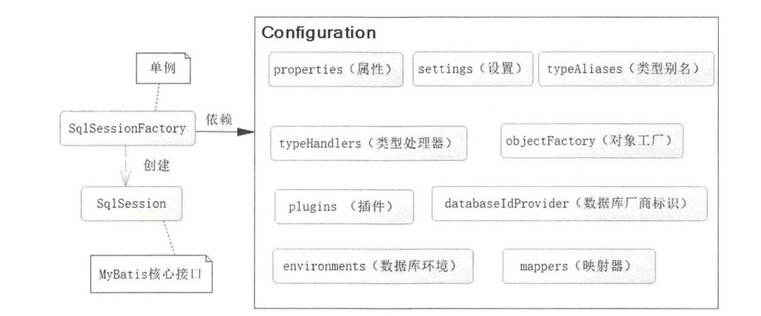 mybatis是一个基于SqlSessionFactory的持久化框架,sqlSessionFactory的作用是生成SqlSession接口对象(mybatis)操作核心。构建SqlSessionFactory的相关工作是通过配置类(Configuration)对相关参数进行配置。配置内容如下: