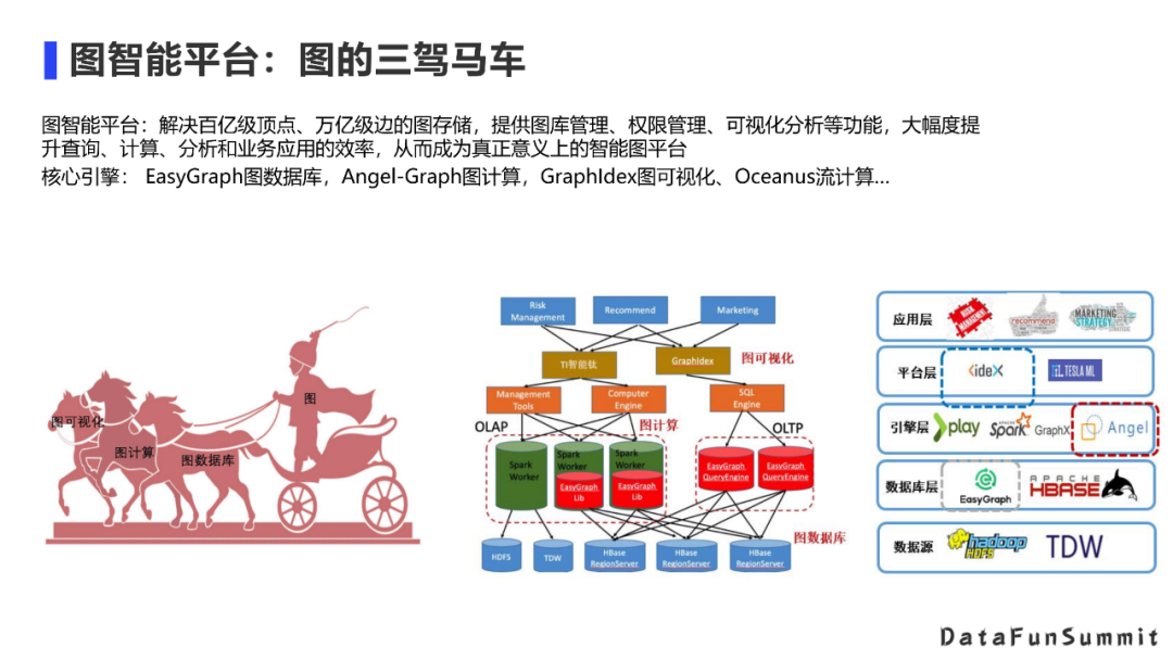 图智能平台的定位是在解决百亿顶点、万亿边的图存储,包括图库管理、权限管理、图查询分析等功能,以便大幅提升业务的查询使用效率。以及为了微信支付、游戏、广告的计算需求提供高性能的图计算能力。解决图数据之上的TP和AP问题。