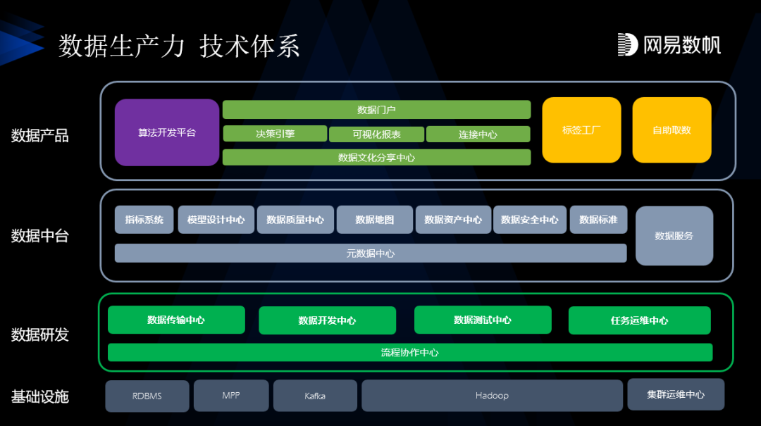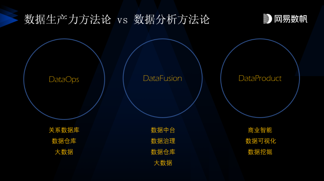 何谓数据生产力?汪源基于数据技术发展的核心目标给出了两层定义:狭义上指用于数据集成、清洗、转换、查询、可视化等数据加工处理软件的生产能力及这些软件的运行维护能力,广义上则指使用数据所带来的组织生产力提升。当然,后者需要前者的支撑。为什么要提出这样的方法论?汪源表示,从上个世纪的关系数据库、SQL、数据仓库、OLAP,到近年来的大数据、数据治理、数据中台,数据分析领域的方法论层出不穷,这些方法论为技术研究和产品开发提供了较好的指导,如数据挖掘提出了超越基础统计的知识发现方法,大数据提出了全体而非抽样、相关而非因果的思想,促成了从ETL到ELT的转变。但由于这些方法论诞生于不同历史背景,天然难以融合形成整体统一的方法论,因而对数据技术的体系化发展造成了困扰。事实上,于企业组织而言,不管构建何种数据处理技术,提升组织生产力都是其核心目标,这就是数据生产力产生的内因。而实现数据生产力的愿景,是实现人人用数据、时时用数据,使得数据分析的能力成为企业差异化的关键。在这方面,7-11便利店、SHEIN、名创优品和德邦快递等行业翘楚已经提供了典型的范例。网易数帆数据生产力方法论包括了三大要素:DataOps、DataFusion和DataProduct。DataOps重点是实现数据生产的敏捷和高质量,来自于Gartner的定义,本质上是通过软件工程的CI/CD(持续集成/持续交付)方法融入数据分析产品开发流程,做到数据需求的敏捷交付。DataFusion要实现整个组织数据的统一和共享,破解烟囱式开发模式下的需求响应慢、查询速度慢等问题。DataProduct(数据产品)最终要实现数据分析系统和业务系统之间的连接,以及数据的智能化的应用。汪源强调,综合性数据生产力方法论三大要素与历史上的数据分析方法论是一脉相承的,汇集了主流数据分析方法论的核心要素。例如,DataFusion就是数据中台、数据治理、数据仓库和大数据等方法论的集大成者。
