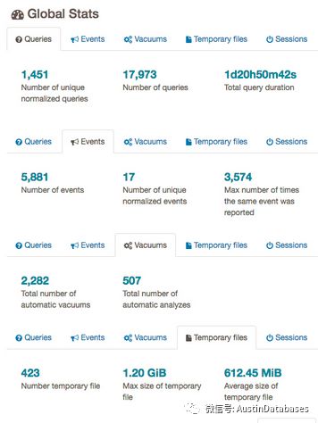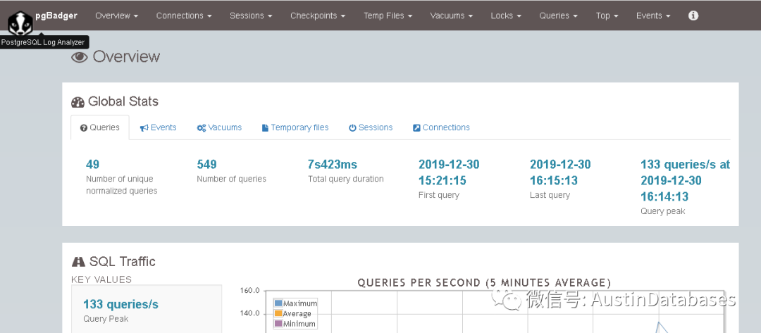 通过 pgbadger 可以对postgresql 的日志进行分析,并且以网页的方式信息展示,还是先给展示一下大致的样子。