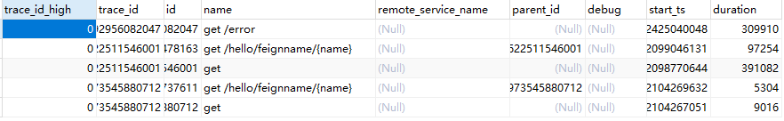 存储数据包括服务调用请求标识(traceId)、服务调用应用名称(serviceName)、服务调用应用地址(ipv4)、服务调用请求方式(http.method)、服务调用请求地址(http.path)、服务调用控制器(mvc.controller.class)、服务调用方法(mvc.controller.method)相关内容。