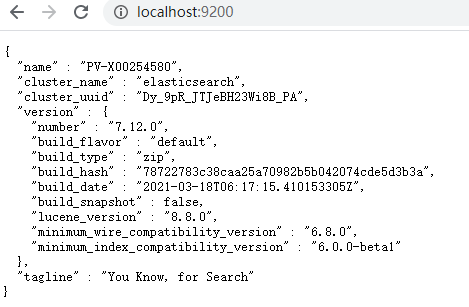 下载完成,解压elasticsearch压缩包,进入bin目录执行elasticsearch.bat,访问9200端口,elasticsearch安装成功。