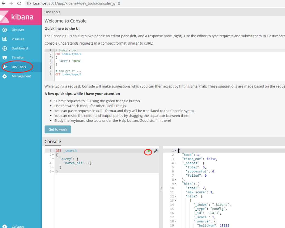 在高并发的情况下,需要借助ElasticSearch存储链路数据。从https://www.elastic.co/下载elasticsearch和kibana(因最新版与引入的zipkin-autoconfigure-storage-elasticsearch依赖存在冲突,使用的版本为5.4.3)。