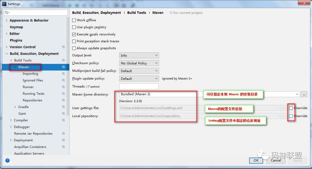 IDEA安装完毕之后,自带Maven的默认配置,我们可以直接使用,但是建议大家选择自己本地的maven设置,不使用默认的配置,如下: