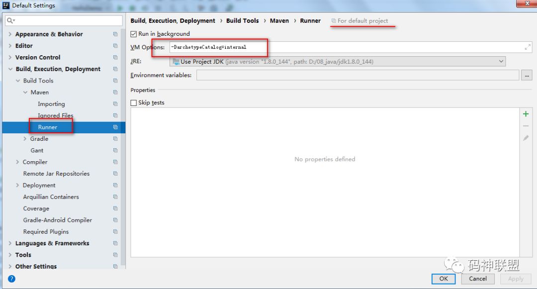 再打开的窗口中,添加如下信息:-DarchetypeCatalog=internal