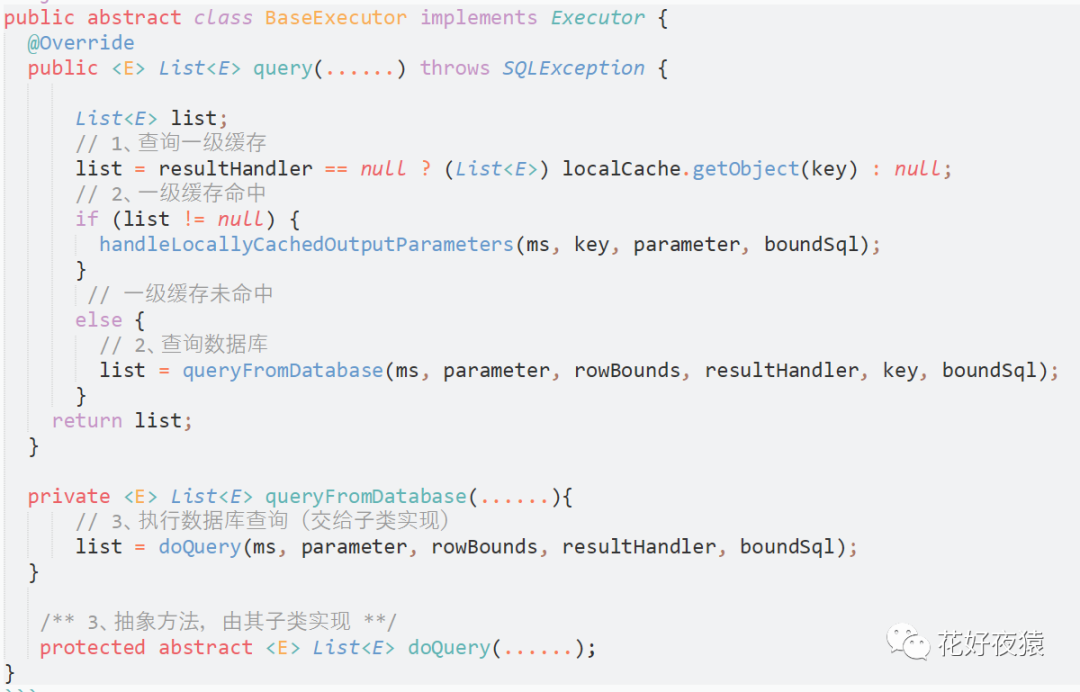 定义了一级缓存实现,并对相关操作进行了通用实现,如:针对查询的执行流程模板如下: