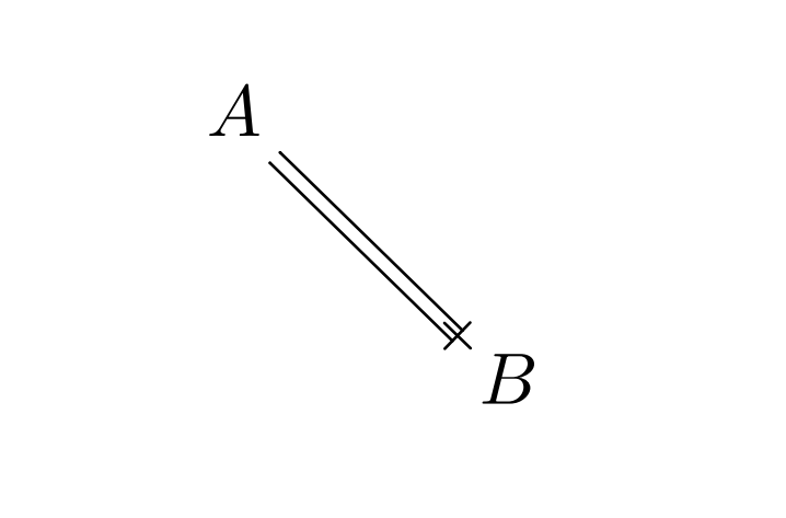 可以画出向一侧平移的箭头,这特别适用于在两个对象之间画双箭头,例如: