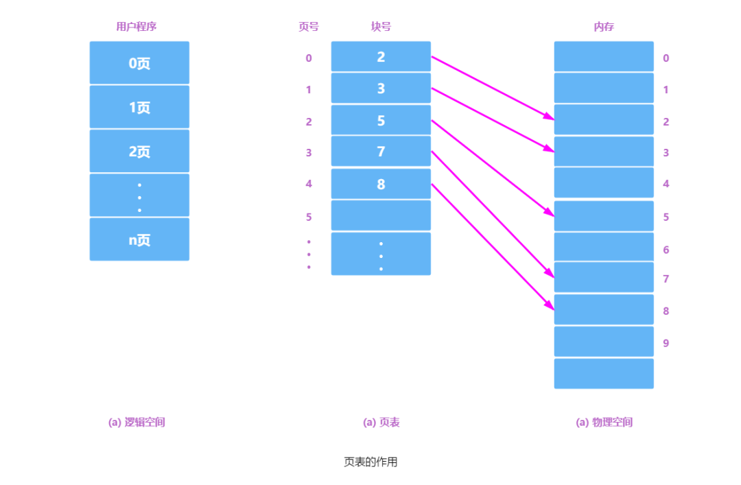 为保证能在内存中找到进程的每个页面所对应的物理块,系统为每个进程建立了一张页面映像表,简称 页表。页表一般存放在内存中。