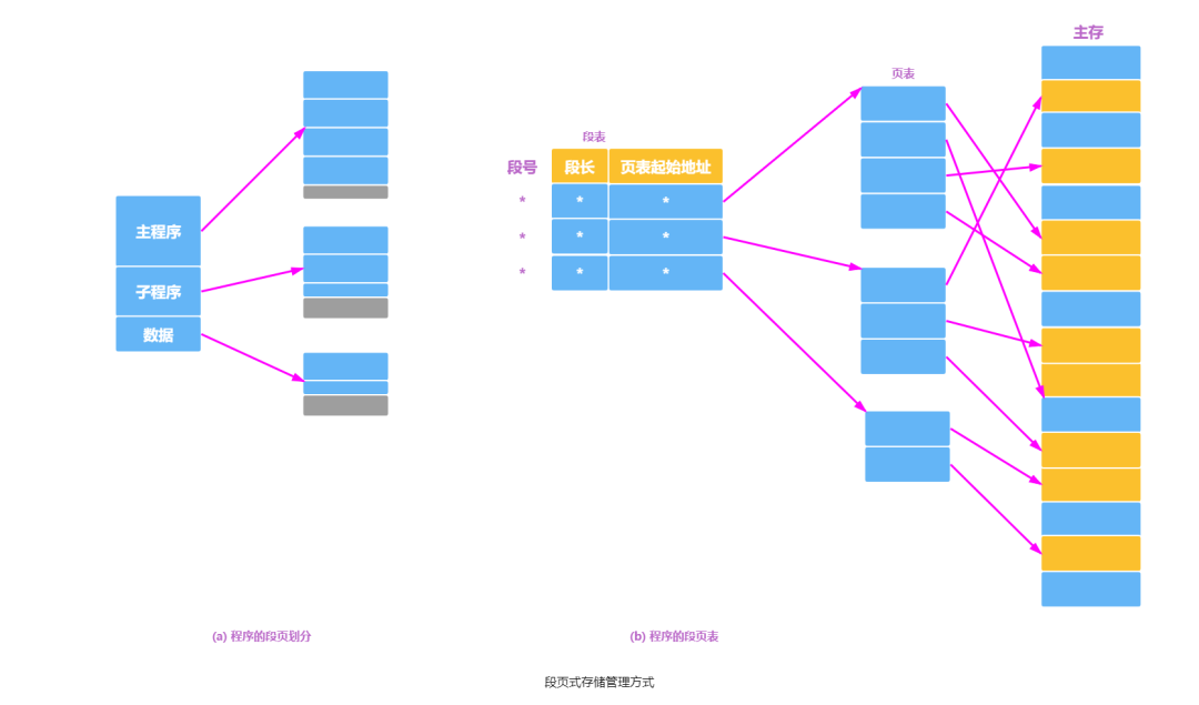 段页式管理方式结合分段与分页的原理,将作业的地址空间被分成若干逻辑段,每段都有自己的段号,然后将每段分成若干大小固定的页。