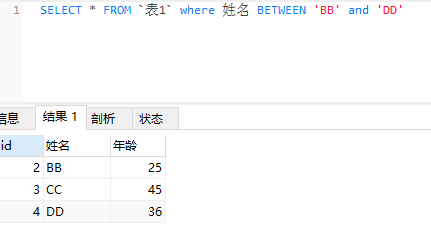 案例2:查询姓名在BB~DD之间的人员数据(通过26个字母的顺序)