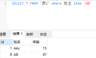 2):LIKE 通常与 % 一同使用,类似于一个元字符的搜索。